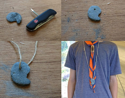 | 拾った勾玉形の石に穴をあけてネックレスを作ったスカウトも。 |